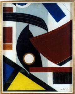 - NOTIZIE STORICO CRITICHE Come per altre opere di Reggiani, anche in questo dipinto si distingue per il forte rigore formale e compositivo. Qui l'artista dispone le forze che soggiacciono agli elementi compositivi e alle scelte cromatiche ottenendo un'inusuale ritmica in cui i singoli elementi sono tra loro fortemente collegati. L'opera, infatti, appartiene al periodo in cui Reggiani è influenzato dalla produzione di Prampolini e si avvicina al Movimento d'Arte Concreta (MAC), di cui diventerà negli anni seguenti presidente. Quest'opera sembra dunque rispondere in maniera ferrea alla sua concezione di opera d'arte e alla definizione degli elementi che la compongono. Secondo Reggiani, infatti, "colore e forma sono la stessa cosa, perché uno è parte integrante dell'altra. Non esistono un piano colorato o una forma fini a se stessi, come una parola resta una parola, tre parole possono creare un'immagine poetica". Anche per questa ragione quest'opera rappresenta la fase di passaggio dalla pittura concretista a quella più libera e fluida degli anni Cinquanta, così come esemplarmente dimostrato da Alessandro Castiglioni.