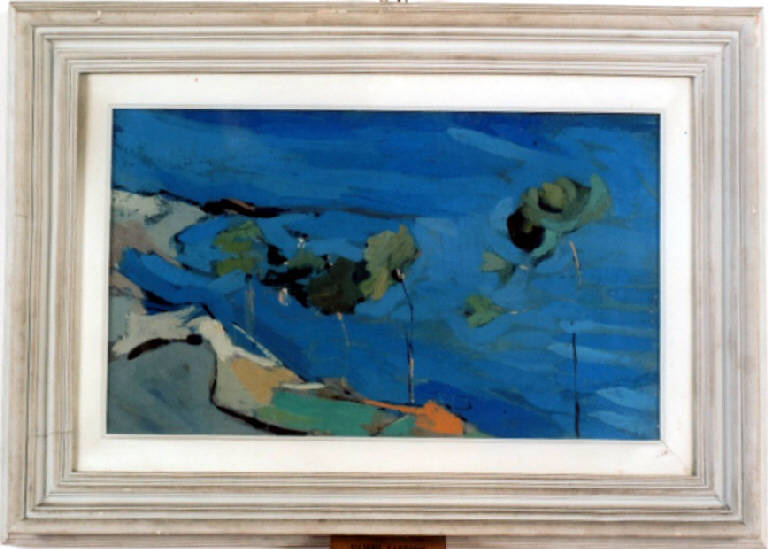 Opera pittorica caratterizzata da un paesaggio marino visto dall'alto e interpretato con libertà di segno e di colore. Colore: tonale; caldo; sfumato.\nStesura: veloce; frammentata; variata. Struttura: dinamica. Luce: diffusa.