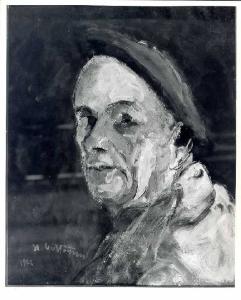 Opera pittorica caratterizzata da uno sfondo scuro da cui emerge il volto del pittore. La stesura è mataerica, veloce, irregolare. La luce illumina il volto.