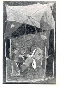 Opera pittorica caratterizzate da forme geometriche e sintetizzate. Colore: tonale; caldo (rosso); freddo (nero), manca la profondità.\nStesura: veloce; frammentata, materica. Struttura: statica. Luce: frontale; contrastata.
