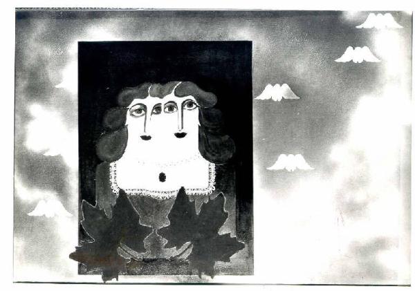 Opera pittorica che rappresenta in un quadrato nero il volto sdoppiato della pittrice. Sullo sfondo si apre un cielo con nuvole bianche e colombe statiche. La luce è diffusa e contrastata.