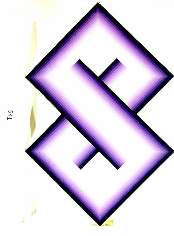Opera pittorica in cui lo spazio compositivo, sagomato a forma di otto, è scandito da linee parallele scure verso i margini esterni e sempre più chiare verso i margini interni, così da determinare un effetto ottico di movimento luminoso. Il colore è tonale; freddo (viola); piatto.\nLa stesura è sottile; uniforme. La struttura è ritmica e simmetrica. La luce è contrastata; frontale.
