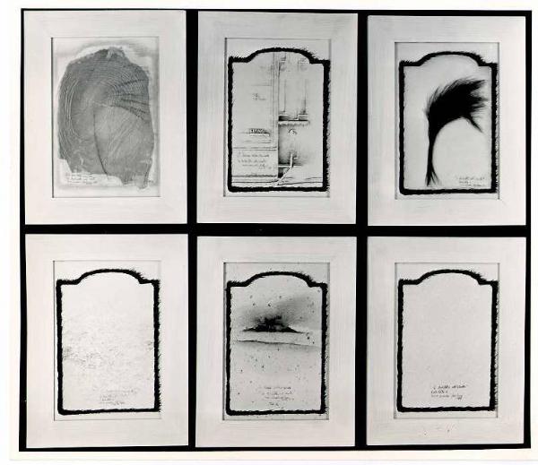 L'opera è composta da sei quadretti disposti in due fila sovrapposte di tre, uniti iconograficamente dalla rappresentazione simbolica del vento ottenuta con piccoli segni sparsi, collage di fogli, di rami, scritture. Stesura: sottile; veloce; a rilievo. Scrittura (orizzontale, corsivo, manuale, frase, parola).\nStruttura: dinamica. Luce: contrastata.