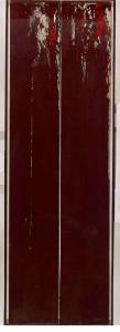 Opera in cui il campo compositivo ad andamento verticale e diviso in due fasce, presenta addensamenti di colore grumoso e magmatico nel margine superiore. Scendendo verso il basso l'addensamento si stempera fino a finire in una fascia quasi uniforme. Il colore è acromatico (nero) e caldo (rosso). La stesura è stratificata; grumosa; a spatola. La luce viene dall'alto.