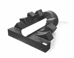 Opera costituita da elementi semicircolari in legno nero su cui è appoggiato un cilindro in legno bianco.