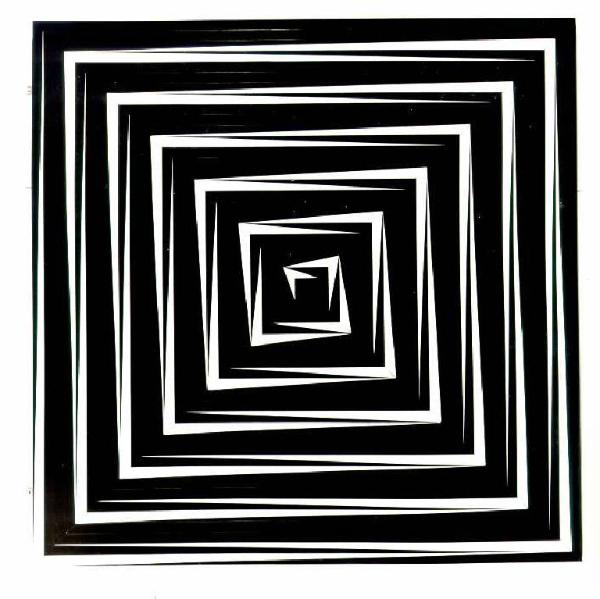 Quadrato in legno bianco e nero che aumenta in profondità man mano si procede verso il centro.
