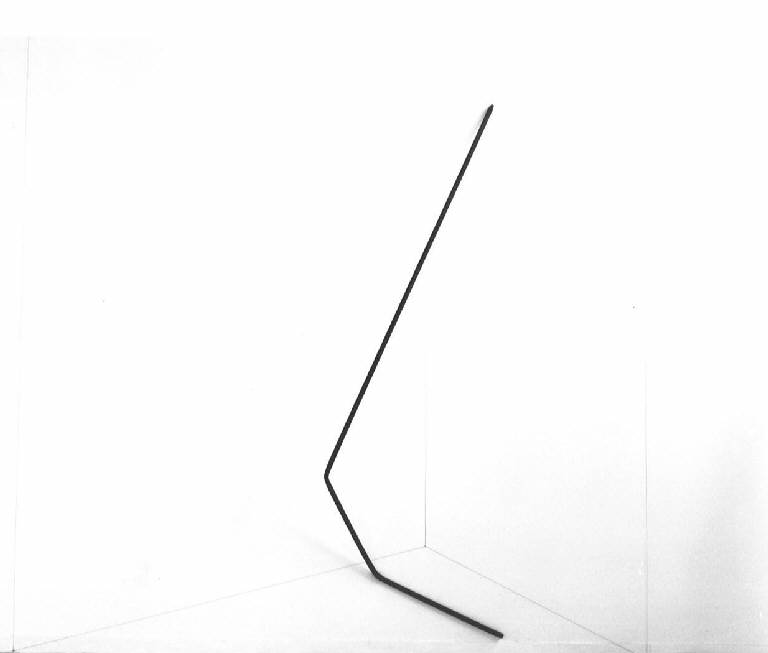 Opera costituita da un'asta di ferro arrugginito e piegata, appoggiata nell'angolo di una parete bianca. \nLo spazio sulla parete è delimitato da un disegno a matita.