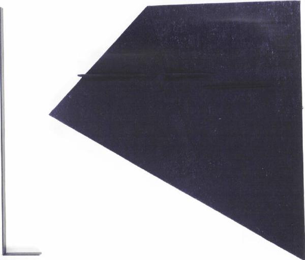 Opera costituita da due elementi: una forma sagomata grigia e una barra in ferro da applicare sotto a una distanza di 10 cm.
