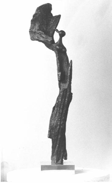 Opera a tutto tondo di forma antropomorfa esile e allungata.