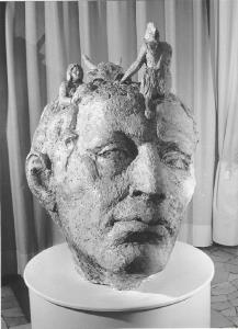 Opera a tutto tondo di grandi diemnsioni rappresentante una testa d'uomo sulla sommità della quale vi sono tre altre sculture: uomo, donna e minotauro.