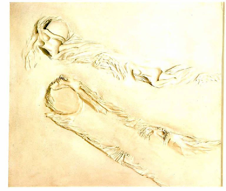 Opera costituita da impronte e scie di oggetti in movimento su una lastra un vetroresina. Da queste impronte nascono e si formano delle figure di donna.
