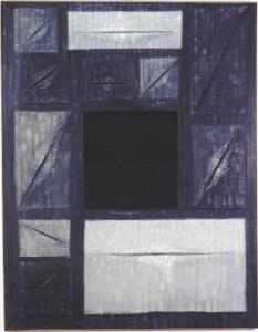 Opera giocata su tre colori: bianco, nero e grigio. Segni leggeri, veloci.