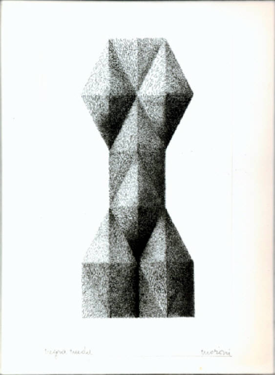 Opera su carta che rappresenta un nudo femminile realizzato con forme geometriche: l'effetto che viene a crearsi è quasi scultureo grazie anche al chiaroscuro.