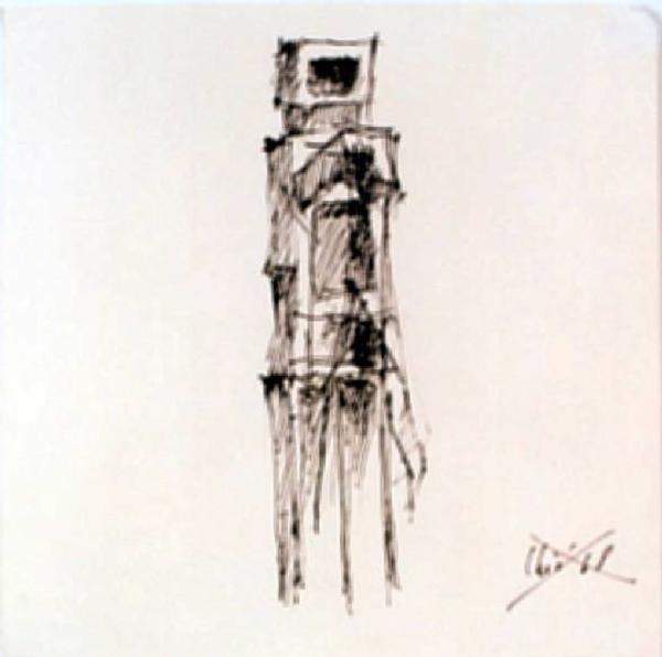 Opera a china che rappresenta forme geometriche sovrapposte che creano una figura.
