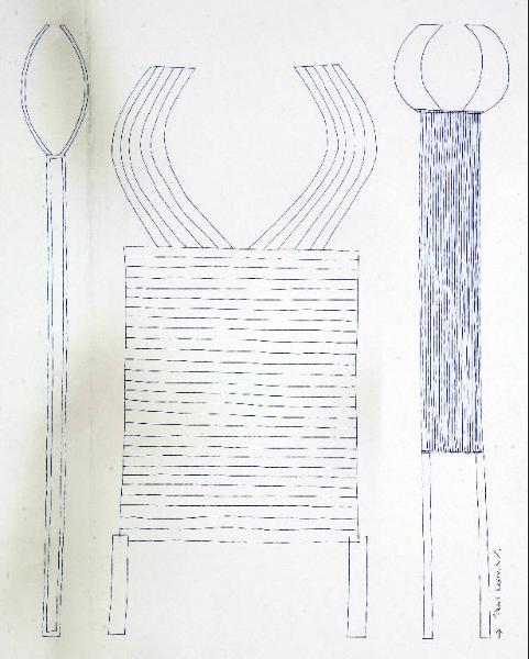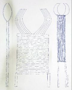 Composizione di forme astratte costituita da tre elementi che si sviluppano verticalmente.