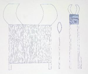 Composizione di forme astratte costituita da tre elementi che si sviluppano verticalmente, il primo dei quali risulta di dimensioni maggiori.