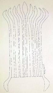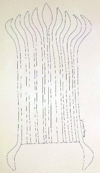 Composizione di forme astratte che si sviluppano verticalmente.