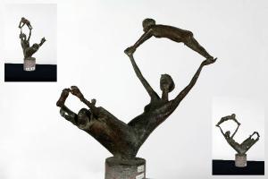 Opera a tutto tondo che rappresenta una giovane donna e due bambini. Il generarsi di una vita da un'altra si risolve plasticamente in tensioni di volumi e linee.