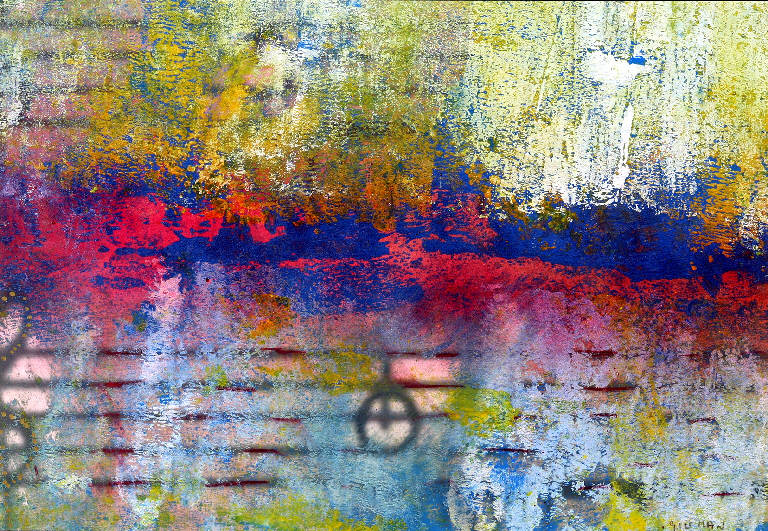 Opera costituita da una stesura libera del colore, da cui emergono segni musicali.