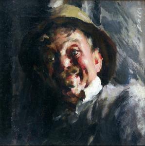 Opera che rappresenta l'autoritratto dell'artista Giacomo Balla. L'espressione con cui l'artista decide di ritrasi è allegra e gioviale: spiccano sul viso rubicondo il sorriso che si apre sotto i biondi baffi i piccoli e i tondi occhi grigio-azzurri. Balla porta un grande cappello di feltro marrone sul capo ma si intravedono anche la camicia bianca e la giacca grigio chiaro con cui è vestito. La pennellata è veloce ma corposa. I colori, a parte il rosa dell'incarnato, sono tutti giocati sui diversi toni del grigio.