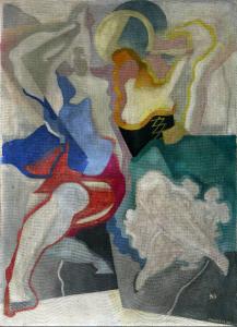 Opera che rappresenta una composizione d'invenzione rappresentante, in modo stilizzato e approssimato due figure femminili che danzano. Le donne portano vestiti molto colorati: quella sulla destra ha un corsetto nero allacciato sul davanti e una gonna verde, mentre di quella sulla sinistra si coglie molto bene la gonna lunga e rossa. Per il resto, è difficile capire il resto delle loro fisionomie, come ad esempio i volti. Quello che interessava all'artista è solamente far vedere il movimento dei corpi, attraverso le gambe. La pennellata è corposa e il colore sembra dividere in sezioni i corpi. I chiaro-scuri sono creati attraverso l'accostamento di stesse tinte ma con gradazioni tonali leggermente diverse.