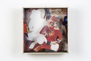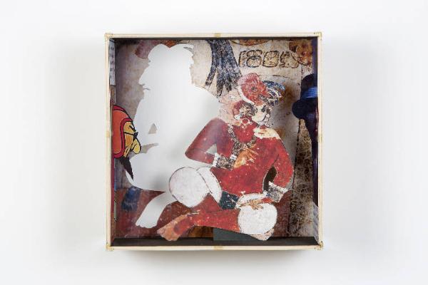 L'opera si presenta come una scatola contenente sagome a rilievo, come una sorta di teatrino.