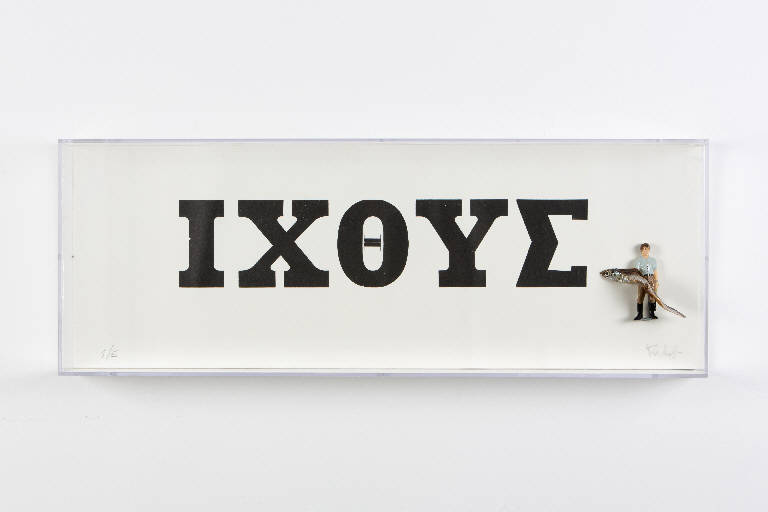 L'opera è costituita da unas erigrafia con la scritta in greco antico della parola pesce. Ad essa viene associata un pescatore con in mano un grande pesce.