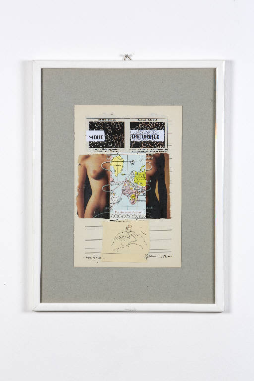 L'opera è una composizione di ritagli di giornale raffiguranti figure femminili , carte geografiche, mani e lettere.