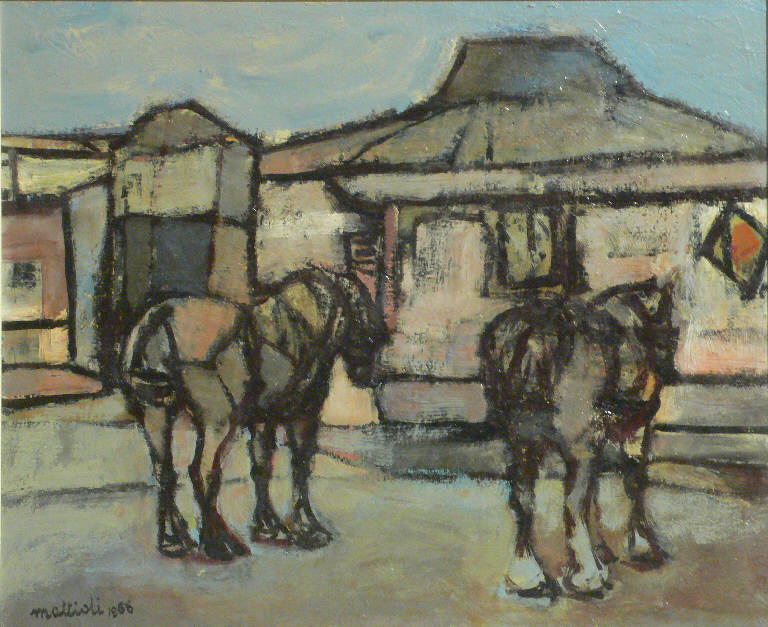 - NOTIZIE STORICO CRITICHE Il soggetto del quadro, i cavalli, è uno dei più cari all'autore. La tecnica dell'olio invece subentra solo dopo il disegno e l'acquerello.