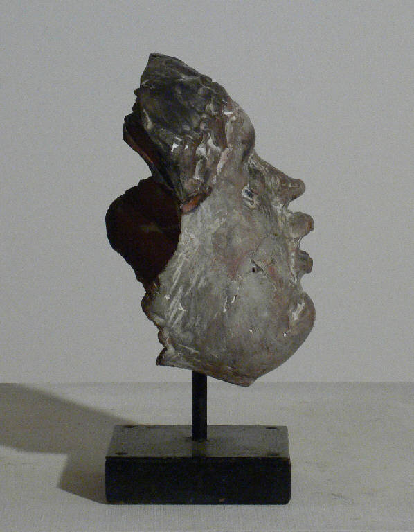 Testa di bambino orientata verso l'alto. La testina non è un tuttotondo ma si presenta come fosse una maschera.