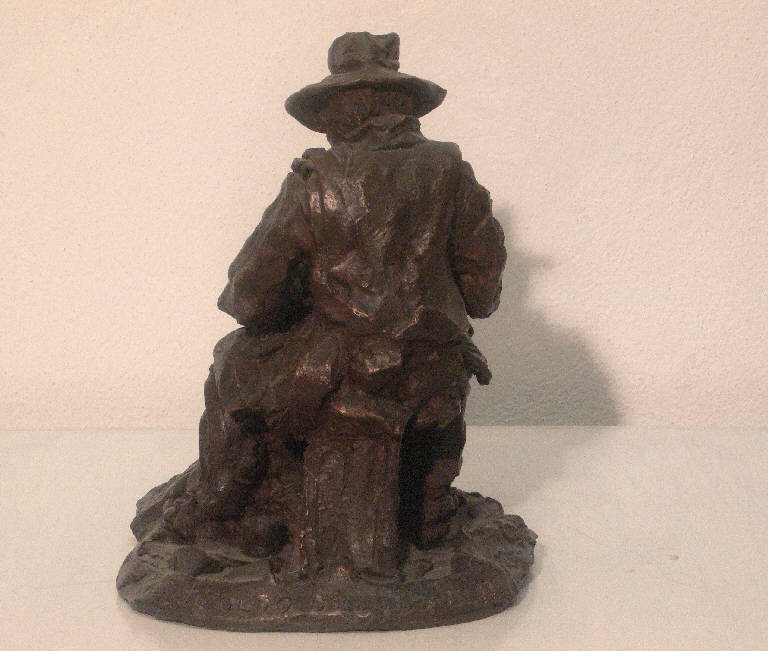 Figura di uomo con cappello seduto che lavora com la mola.