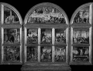 tabernacolo dipinto di Butinone Bernardino (e aiuti) - ambito milanese (fine/inizio sec. XV)