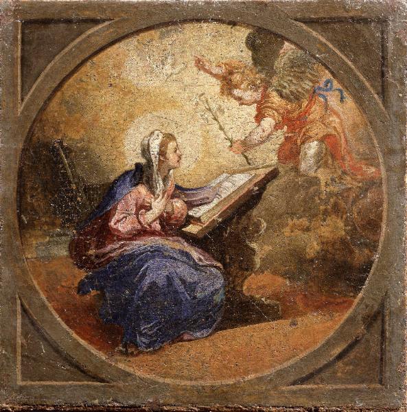 - NOTIZIE STORICO CRITICHE Il Borsetti così descrive l'opera: "Iosepho Heintz di Augusta - Uno delli misteri del Rosario ovè figurata la Annunciazione dell'Angiolo, opera di Isepo Heintz di Augusta, e simili sono li seguenti sino al numero sette, essendo stati questi levati l'anno 1769 dal quadro segnato in questo foglio al numero 10, altri numeri 5 si vedranno in questa sala al foglio n. 3 distintamente segnati; altri quattro che per formare li quindici misteri sono iti a male". I 15 misteri del Rosario furono tolti dalla pala cui appartenevano nel 1769. La data 1641 e la firma "Heintz Joseph il Giovane" sono state riscontrate in un'opera facente parte di questa serie di misteri del rosario e conservata a Treviso in collezione privata (Donzelli Pilo, 1967).
