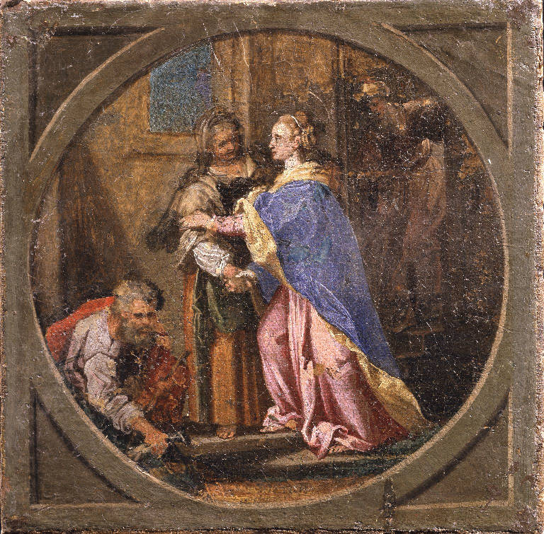 - NOTIZIE STORICO CRITICHE Così il Borsetti descrive questa serie di Misteri del Rosario: "Iosepho Heintz di Augusta - Uno delli misteri del Rosario ovè figurata la Annunciazione dell'Angiolo, opera di Isepo Heintz di Augusta, e simili sono li seguenti sino al numero sette, essendo stati questi levati l'anno 1769 dal quadro segnato in questo foglio al numero 10, altri numeri 5 si vedranno in questa sala al foglio n. 3 distintamente segnati; altri quattro che per formare li quindici misteri sono iti a male". I 15 misteri del Rosario furono tolti dalla pala cui appartenevano nel 1769.\nLa data 1641 e la firma "Heintz Joseph il Giovane" sono state riscontrate in un'opera facente parte di questa serie di misteri del rosario e conservata a Treviso in collezione privata (Donzelli Pilo, 1967).