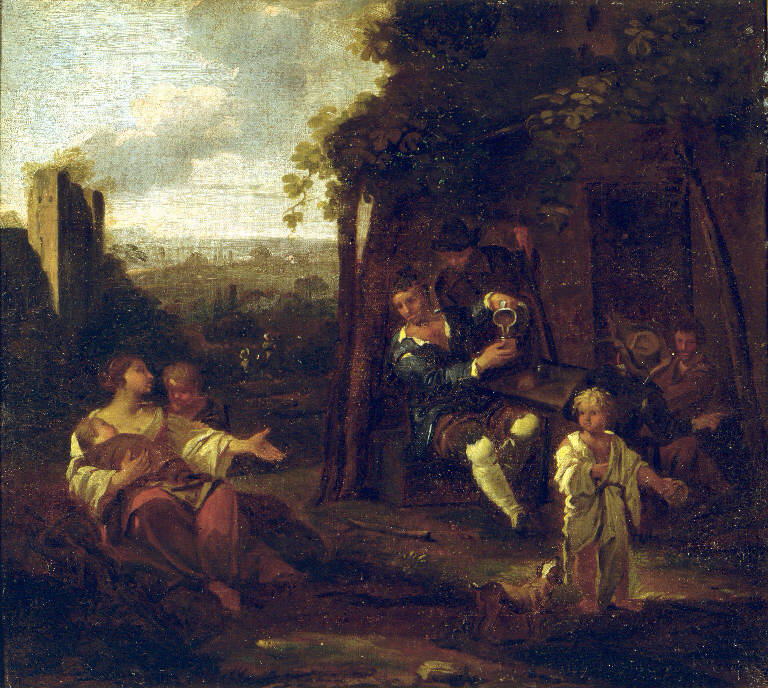 Scena di genere con bevitori e pitocchi
