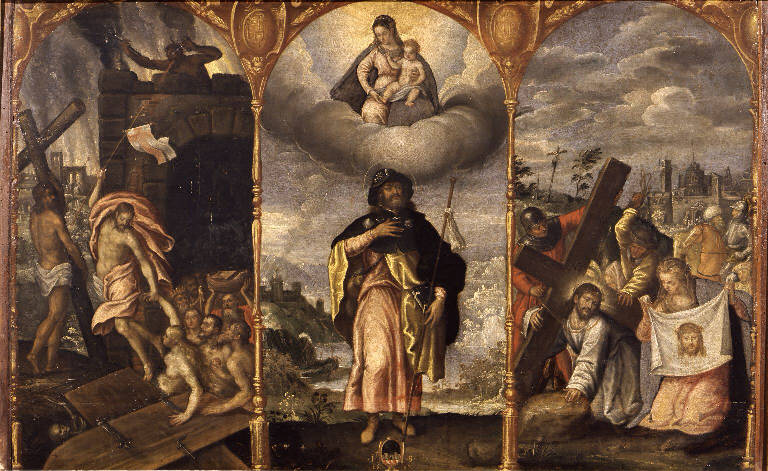• NOTIZIE STORICO CRITICHE Il motto M R A (MARIA) era stato interpretato come il motto della Misericordia di Bergamo (MIA) (1930, Ricci Corrado).\nL'attribuzione ad Alessandro Maganza è dubbia.