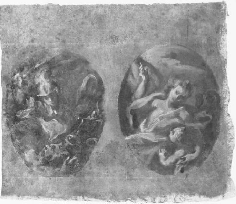 Entro due ovati: a sinistra l'Arcangelo Michele uccide il demonio con la spada; a destra un Angelo custode, a mezza figura, abbraccia un bambino suo protetto.