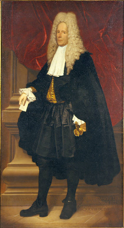 - NOTIZIE STORICO CRITICHE L'opera, lasciata in eredità da Girolamo Secco Suardo nel 1793, pervenne all'Accademia Carrara per legato testamentario del conte Giovanni Secco Suardo (1873). L'identità del personaggio è garantita dall'iscrizione sul basamento: essa corrisponde parzialmente alla lapide funeraria apposta sulla tomba del Secco Suardo nell'Oratoiro della Beata Vergine nel castello di Lurano. Il dipinto costituisce l'inizio dell'attività del Ghislandi per l'aristocrazia bergamasca di cui diverrà il ritrattista ufficiale. I dati del restauro, che risulta senza data, sono tratti dal rilevamento dello stato di conservazione del 1974.
