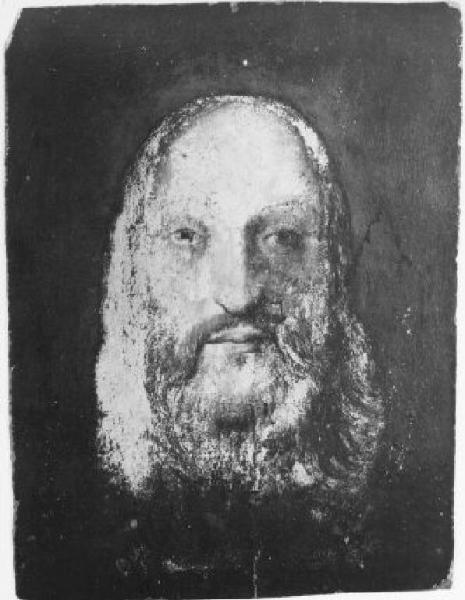 Testa di Gesù Cristo, frontale, con barba e stempiatura.