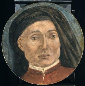 - NOTIZIE STORICO CRITICHE Secondo Rossi è possibile chel'opera sia un autoritratto. Si tratta di un frammento del complesso decorativo di Santa Trinita con figure nella Cappella maggiore del coro (Cappella Gianfigliazzi) della chiesa di S. Trinita a Firenze. Oggetti collegati: Incontro della Regina di Saba con Salomone (Firenze; Chiesa di S. Trinita). L'iscrizione al verso a pennello nero su preparazione a gesso risale al secolo XVIII. Lo stacco dal muro è stato eseguito con una tecnica arcaica ma ben condotta; i tratti fisionomici sono stati eseguiti a pennello. L'opera fu strappata dalla parete che la ospitava in S. Trinita durante la demolizione degli affreschi. Gli affreschi furono stimati nel mese di gennaio del 1497 da Cosimo Rosselli, Benozzo Gozzoli, Pietro Perugino e Filippo Lippi e furono distrutti a causa del loro grave stato di deperimento, ma prima Giovanni di Poggio Baldovinetti ne aveva fatto eseguire una copia da conservarsi in casa Baldovinetti. La cornice in listello ligneo circolare risale al secolo XX.