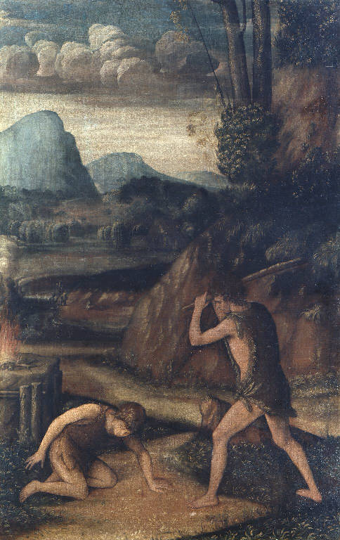 - NOTIZIE STORICO CRITICHE Si tratta di un episodio di un ciclo decorativo, probabilmente quello conservato per un certo periodo nel Gabinetto di Isabella d'Este, nel Palazzo Ducale di Mantova. Oggetti collegati: Creazione di Eva (Roma, Collezione Visconti Venosta), Tentazione di Eva (Roma, Collezione Visconti Venosta), Cacciata dal Paradiso Terrestre (Roma, Collezione Visconti Venosta), Mosè fa scaturire l'acqua dalla roccia (Roma, Collezione Visconti Venosta), Raccolta della manna (London, National Gallery), Trionfo di Miriam (London, National Gallery), Dio che appare a Mosè (disperso).