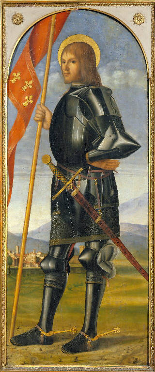 - NOTIZIE STORICO CRITICHE Si tratta dello scomparto laterale destro del Trittico di Lepreno. Oggetti collegati: vedi scheda precedente e Padre Eterno (Bergamo già, Casa Noli già). Già identificato in Gesù Cristo in abito da pellegrino. Antonio Piccinelli acquistò l'opera nel 1870.