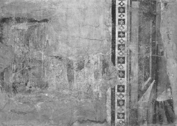 - NOTIZIE STORICO CRITICHE Della decorazione ad affresco della chiesa di S. Antonio in Foris si conservano diciassette dipinti trasportati su tela con supporto rigido, ed uno in loco, nella lunetta del portale laterale murato della ex chiesa. Il dipinto in esame, strappato nel 1955 e donato al Comune di Bergamo dal Sig. Bonimi nello stesso anno, è stato depositato all'Accademia Carrara nel 1985. Lì si trova ancora insieme ad altri sette affreschi ("Testa di Santo barbuto", "San Giovanni Battista", "San Giovanni Battista", "Figura con manto panneggiato", "Santo (?)" e "Fregio"). I restanti nove dipinti ("Natività di Gesù", "Madonna del Latte e Santa", "Sante", "Cristo", "Santo diacono con libro", "San Bartolomeo", "Sant'Antonio Abate", "Sant'Antonio Abate", "Madonna con Bambino in trono e Sant'Antonio Abate" e "Madonna con Bambino in trono con Santi e angeli") sono al Museo dell'Affresco nel Palazzo della Ragione.
