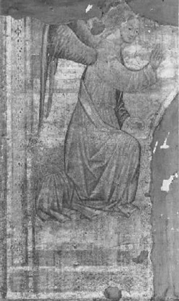 - NOTIZIE STORICO CRITICHE Il dipinto è stato strappato e riportato su tela fissata su telaio ligneo parchettato nel 1919 quando fu salvato dalla distruzione per deliberazione della Giunta Comunale che lo fece strappare dalle pareti cadenti di una casa già Rota nella frazione di Pagliaro a Frerola. Fa parte di un gruppo di affreschi, comprendenti un' "Annunciazione", una "Madonna in trono con Santi" e una "Crocifissione" riferibili alla maniera di Maffiolo da Cazzano tutti in deposito presso il Palazzo della Ragione, Sala delle Capriate.
