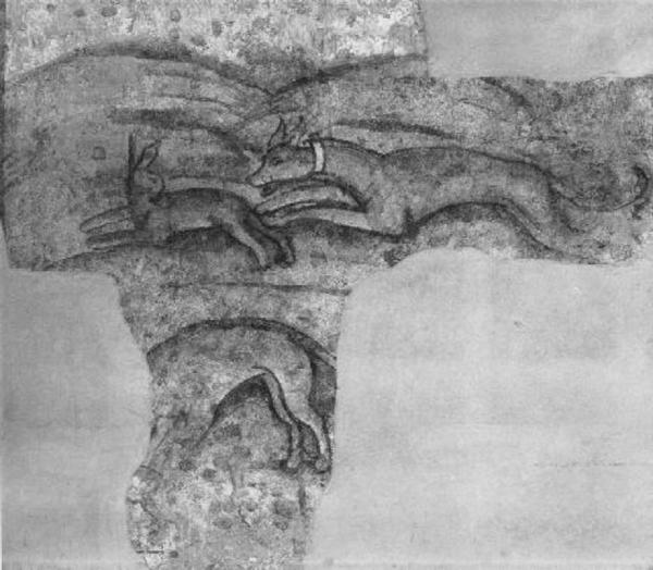 - NOTIZIE STORICO CRITICHE Il dipinto è stato strappato da muro e riportato su tela in epoca imprecisata. Insieme ad altri cinque affreschi raffiguranti una "Figura maschile con lepre", "Piramo e Tisbe", due "Fregi vegetali" e un "Paesaggio con cane", proviene da una casa privata di Almenno San Bartolomeo. Si trova in deposito nella Sala dei Giuristi nel Palazzo del Podestà di Bergamo.