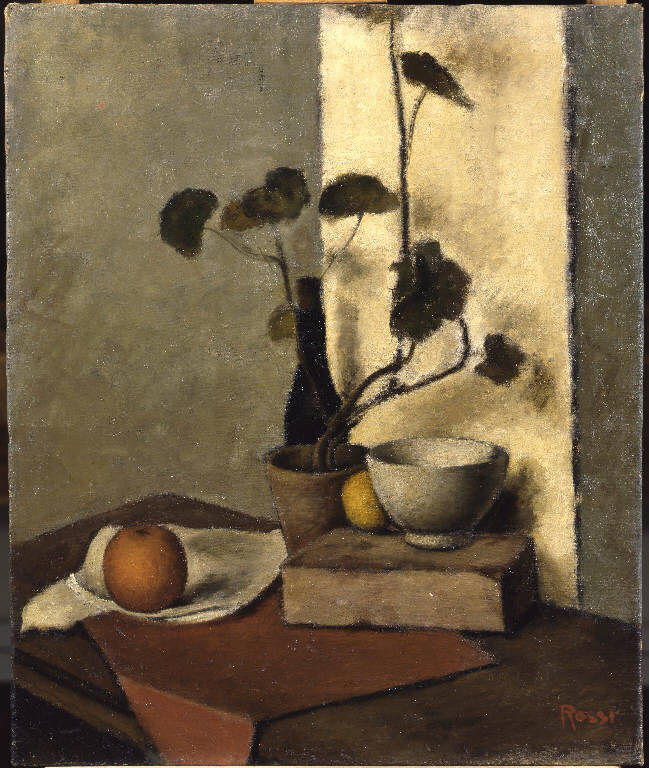 - NOTIZIE STORICO CRITICHE Allievo di Contardo Barbieri. Nel 1931 Rossi vince il Primo Premio, che non gli viene assegnato per motivoi disciplinari. L'opera qui in esame riflette gli insegnamenti del maestro in direzione novecentista, che si riassumono nella semplificazione delle forme, e nei "tagli geometrici dei piani d'appoggio" (G. Valagussa, Primizie d'Artista), il tutto modulato da una pennellata corposa e una luce calda, che impasta le forme.