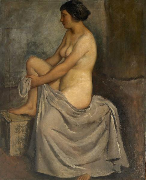 - NOTIZIE STORICO CRITICHE Allievo di Contardo Barbieri. Vincitore di diversi premi, tra i quali il viaggio a Roma nel 1933. A Roma frequenta la scuola di restauro e inizia la sua carriera di restauratore, lavorando in Italia e all'estero. L'opera realizzata nel 1935, al termine quindi di un lungo percorso scolastico, in realtà è la rivisitazione di un'altro nudo di donna realizzato nel 1931 da Abele Bassani (cfr. EL00069). Forse esisteva un prototipo illustre cui i due giovani artisti si ispirano. Rispetto all'opera del Bassani questa dimostra una maggiore personalità pittorica e sicuramente una maggiore adesione non tanto all'arte del maestro, o all'arte classica (come per il Bassani), ma alla produzione pittorica italiana del periodo: luce fredda, fondo neutro, e soprattutto la netta linea di contorno che caratterizza il profilo sono elementi personali e nuovi per la scuola di pittura bergamasca.\nAl verso del dipinto si segnala la presenza di uno schizzo realizzato a matita e carboncino, che raffigura il busto di una donna.