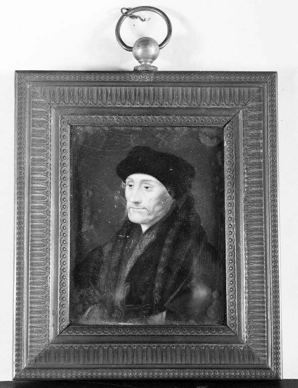 - NOTIZIE STORICO CRITICHE L'opera è da considerarsi tratta dal ritratto di Erasmo da Rotterdam, eseguito da Hans Holbein il Giovane nel 1523. L'opera è entrata in Carrara col legato Marenzi.