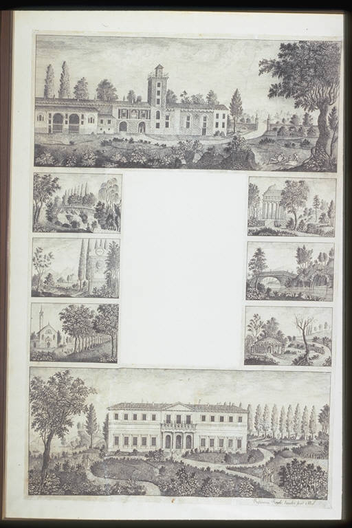 Villa, chiesa, tempio, monumento, ponte, alberi