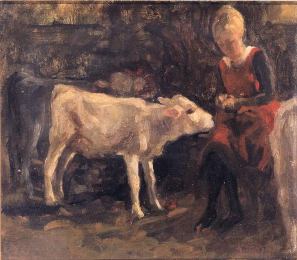 Nella stalla. Figura femminile seduta